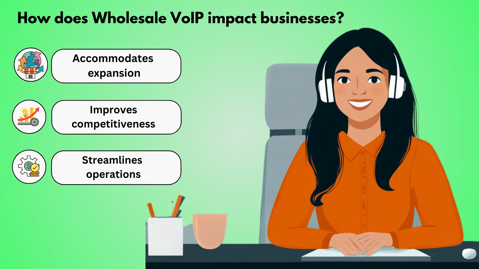 Wholesale VoIP reduces costs and increases efficiency by minimizing infrastructure investment, reducing operational expenses, and increasing productivity. This enables competitive pricing, increased market share, and revenue growth.Scalable