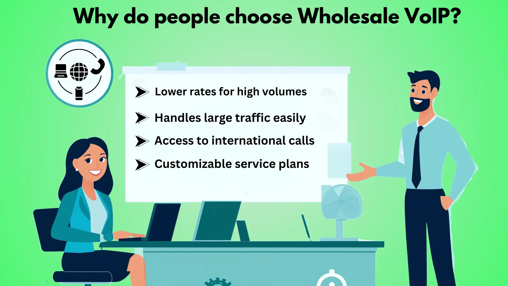 The international Wholesale VoIP network infrastructure consists of data centers, servers, and switches located in strategic hubs around the world. Advanced routing and switching technologies enable efficient call routing, ensuring high-quality voice services and minimal latency. International VoIP providers manage this infrastructure, ensuring reliable and secure connections, and compliance with local regulations and standards. This infrastructure enables businesses to offer seamless VoIP services to customers globally, regardless of geographical boundaries.Why do people choose Wholesale VoIP?